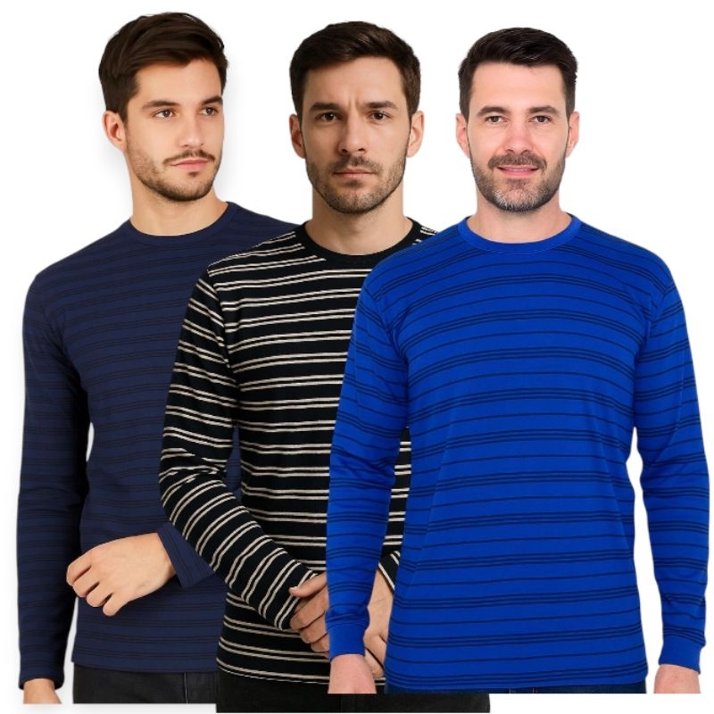 kit 3 camisa manga longa malha fria poliéster listrada REF-221