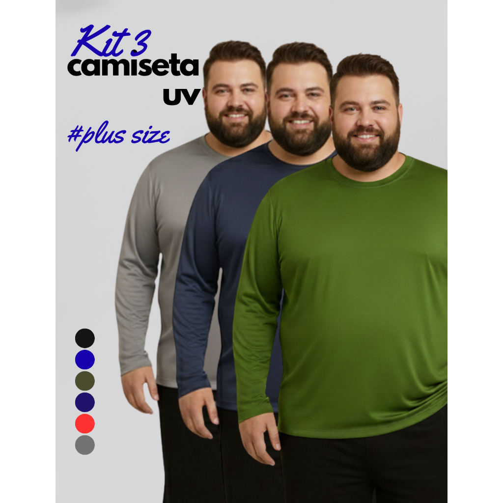 Kit 3 Camisa Proteção Solar Plus Size Unissex Segunda Pele UV 50+