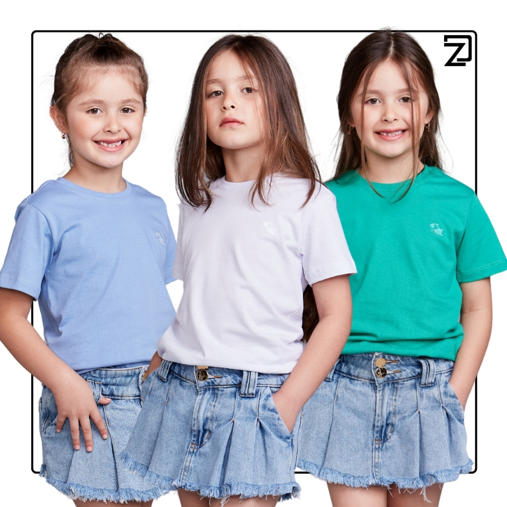 Kit 3 Camisas Básica Manga Curta Infantil Kids
