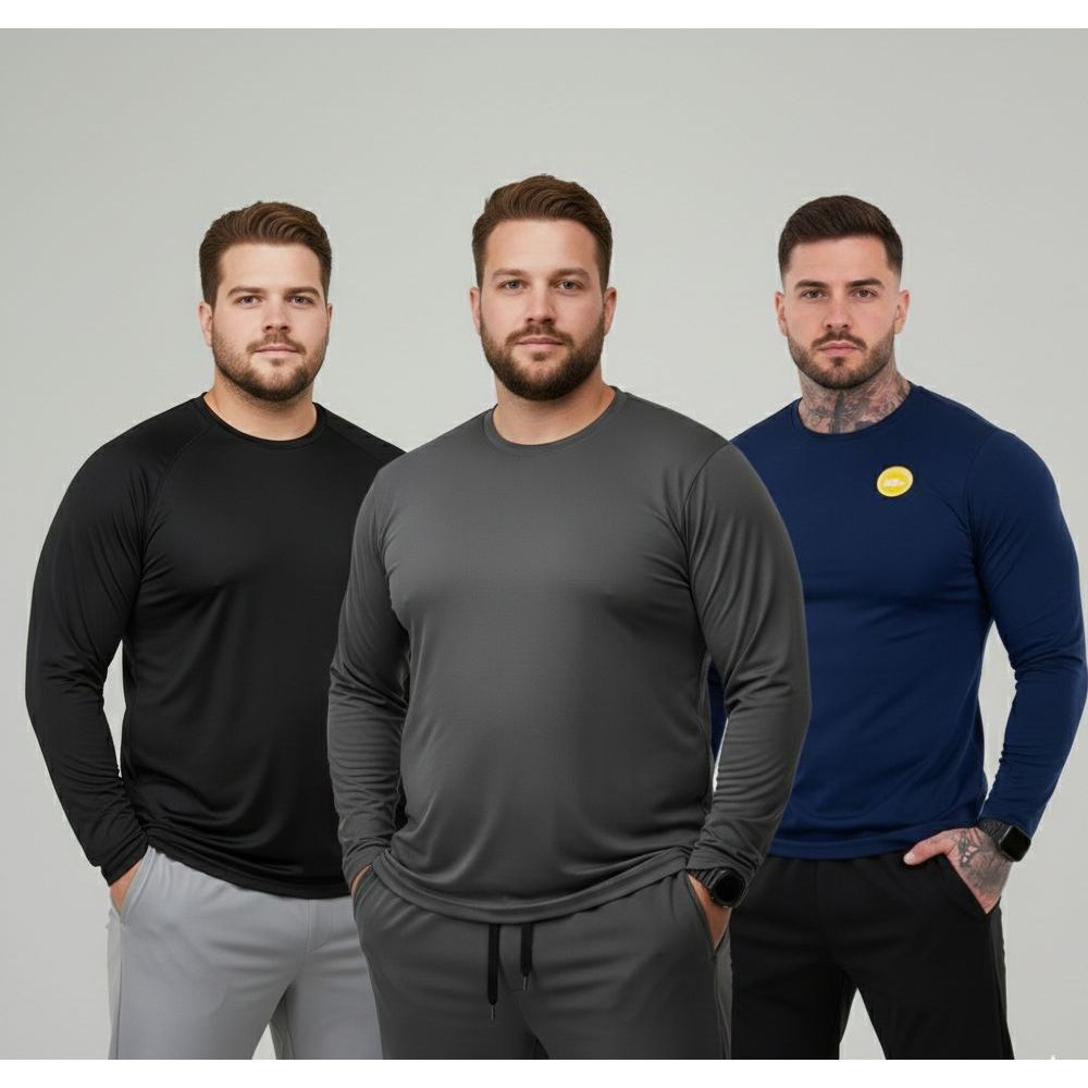 Kit 3 Camisas Térmicas M ao G4 Masculinas UV 50+ Segunda Pele Academia