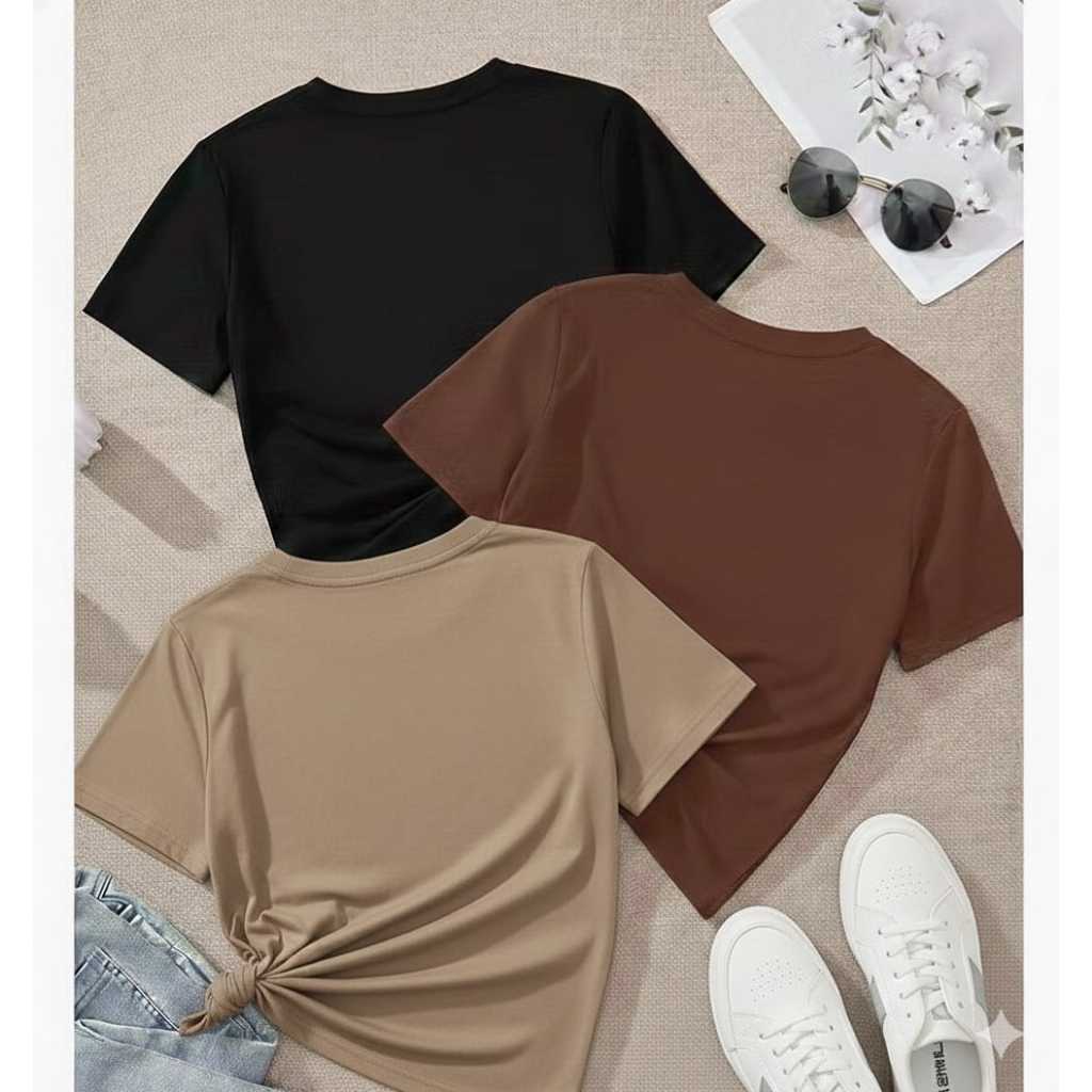| Kit 3 Blusa Feminina Suplex Manga Curta Baby tee | R$ 42,50 | 15% | 4.8/5 | 11 mil |