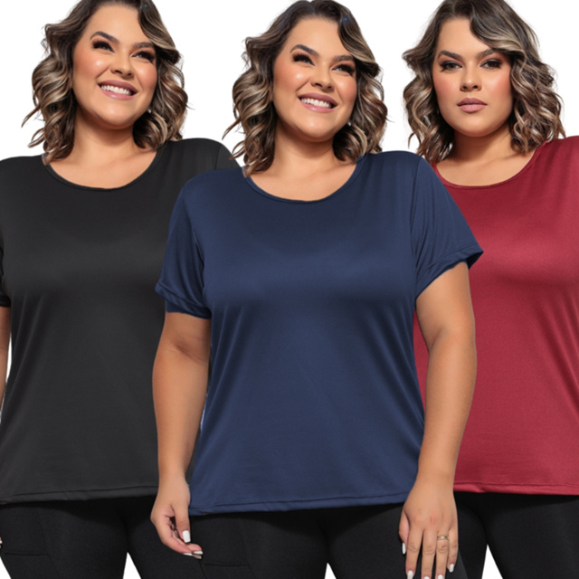 Kit 3 Camiseta Dry Fit Feminina Plus Size de Alta Performance G1 ao G4