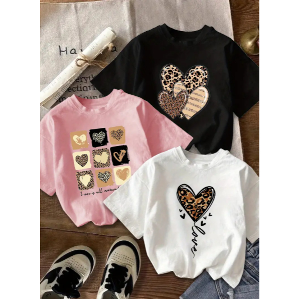 Kit 3 Camiseta Feminina Minimalista Camisa T-shirt 100% Algodão Estampa Coração