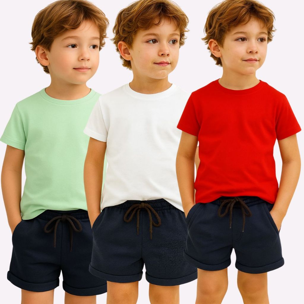 Kit 3 Camiseta Infantil Juvenil Algodão 100% Lisa Básica Moda InfantoJuvenil Dia a Dia Escola Menino