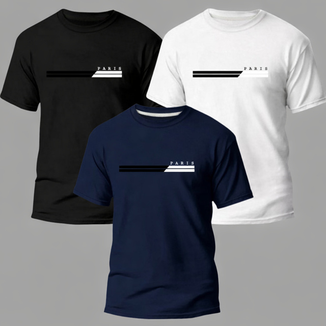 Kit 3 Camiseta Masculina 100% Algodão Premium Camisa Paris Fio 30.1 Confortável Varias Cores Oferta