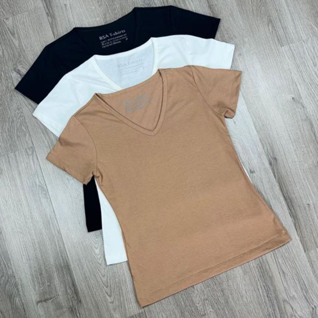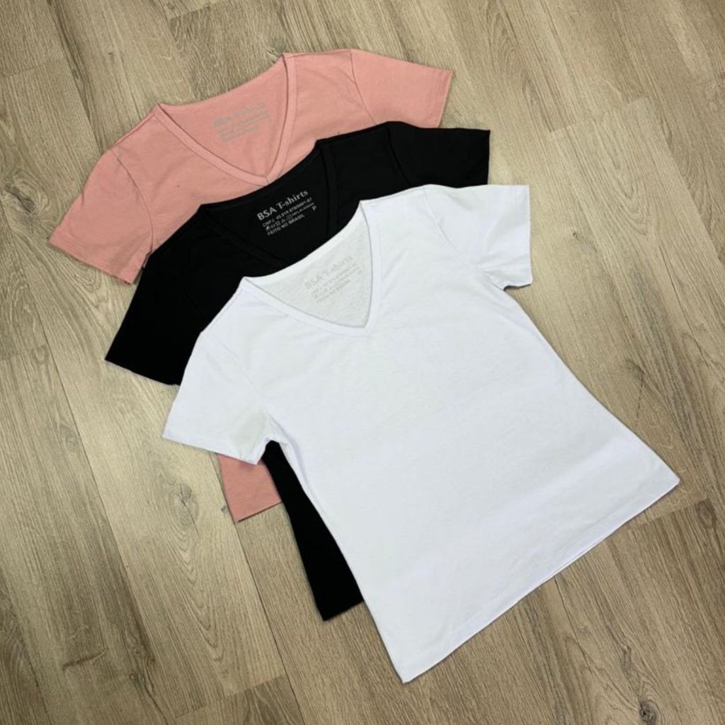 | Kit 3 Camiseta T-shirt Gola V Blusinha Feminina Lisa Básica 100% Al... este produto | R$ 68,90 | 13% | 4.9/5 | 56 |