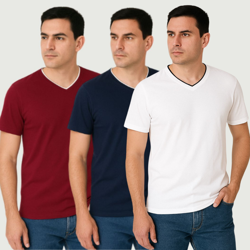 Kit 3 Camisetas Básica Masculina Gola V Lisa Algodão
