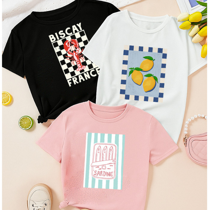 Kit 3 Camisetas Básicas Femininas Sardinha Limoncello Blusa 100% Algodão T-Shirt Vintage Lançamento