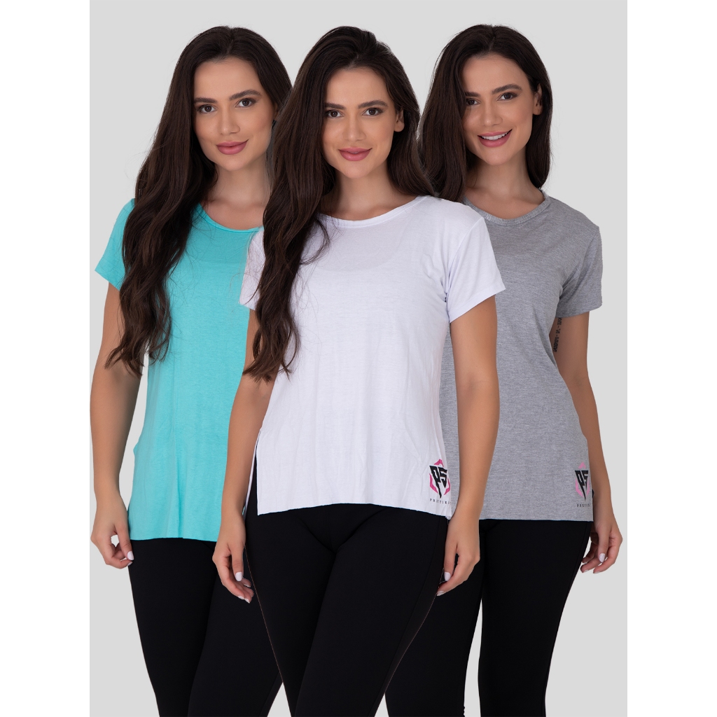 Kit 3 Camisetas Blusas Feminina Fitness Tapa Bumbum Ps