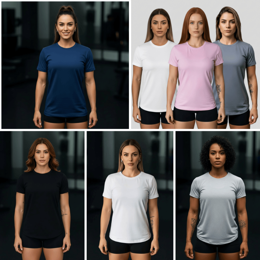 Kit 3 Camisetas Femininas Dry Fit Vibe Ativa – Academia e Corrida