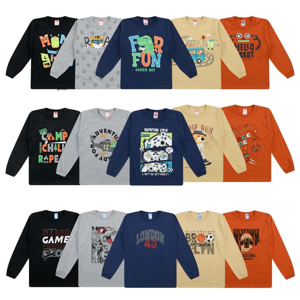 Kit 3 Camisetas Infantil Manga Longa Sortidas