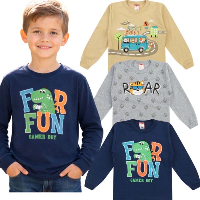 Kit 3 Camisetas Manga Longa Infantil Menino O kit perfeito pra deixar os meninos bem vestidos e preparados para os dias mais frescos. Composto por 3 camisetas de manga longa, é ideal para o dia a dia, escola, passeios e momentos de lazer. As peças são versáteis, fáceis de combinar com calças, bermudas e conjuntos, ajudando a montar vários looks com poucas peças. Modelagem confortável, pensada para acompanhar os movimentos das crianças com liberdade, sem apertar. ✨ Destaques do produto: • Kit com 3 camisetas manga longa • Modelagem infantil confortável • Ideais para uso diário • Fáceis de combinar com outras peças • Ótima opção para montar looks variados • Práticas para todas as ocasiões Perfeito para quem busca praticidade, bom custo-benefício e peças essenciais no guarda-roupa infantil masculino. 💙