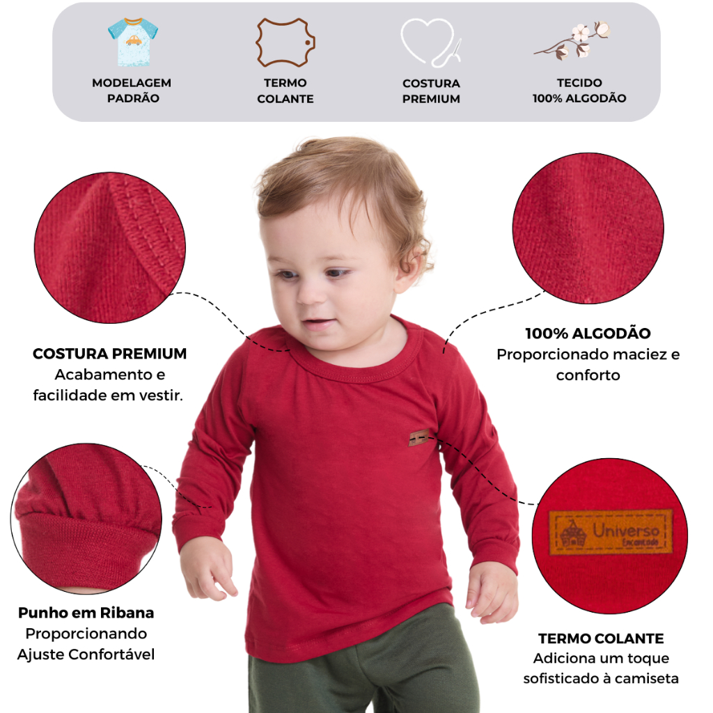 Kit 3 Camisetas Manga Longa Infantil Bebê Menino Básica Lisa Tamanho 2 ao 10
