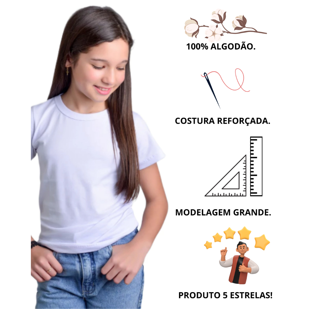 Kit 3 Camisetas Menina Infantil Manga Curta Básica Lisa Tamanho 2 ao 12, Camisa 100% algodão