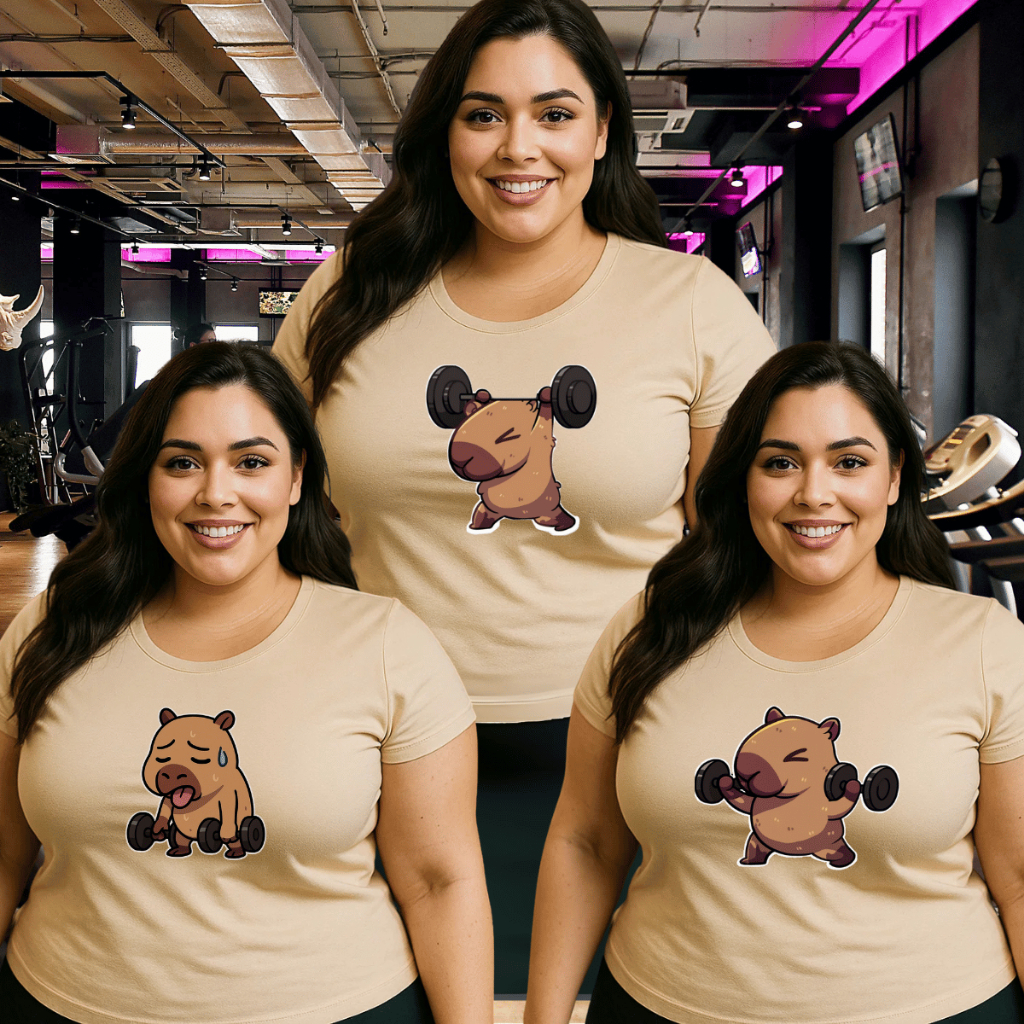 Kit 3 Camisetas Plus Size Feminina P ao G5 Estampada Capivara Academia Camisa Blusa 100% Algodão Verão