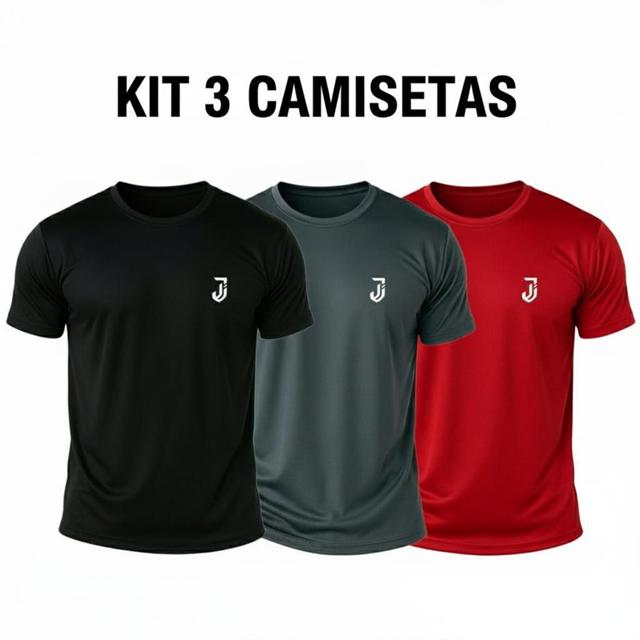 Kit 3 Camisetas Poliéster DryFit Masculina Lisa Academia Corrida Casual Esportes Confortável Atividade
