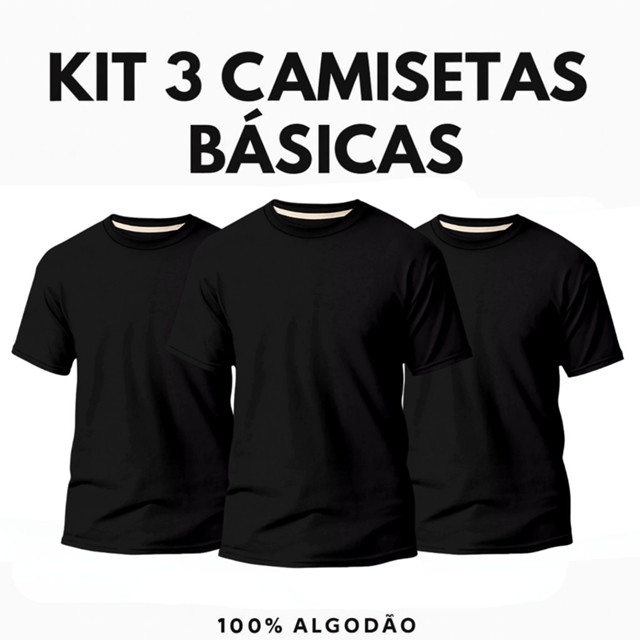 | Kit 3 Camisetas Básicas Masculina Slim Algodão T01 | R$ 61,90 | 27% | 4.8/5 | 4.1 mil |