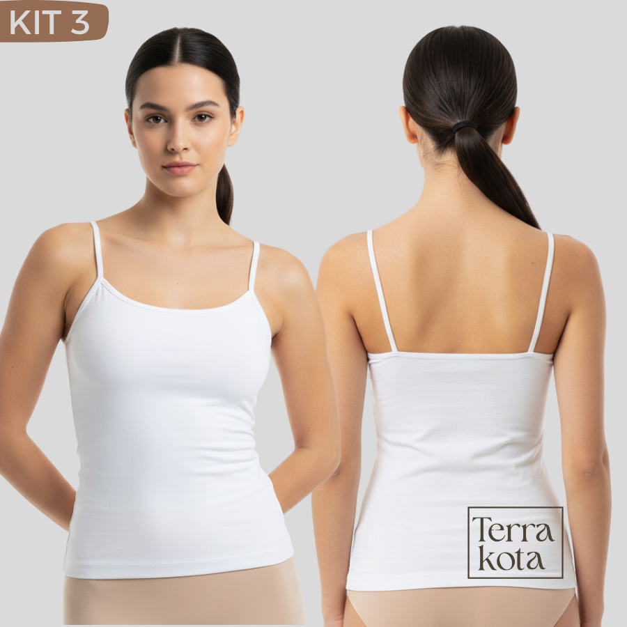 Kit 3 Camisete Regata Feminina Combinete Anágua Alça Fina Segunda Pele Confortável Blusa