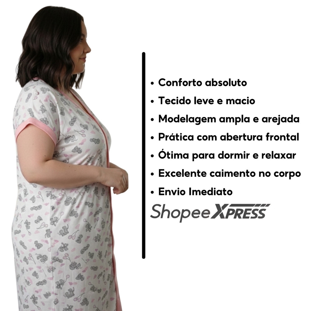 A Camisola Plus Size Aberta de Botão foi criada especialmente para oferecer máximo conforto, praticidade e bem-estar às mulheres que vestem tamanhos maiores. Com modelagem ampla, leve e super confortável, ela proporciona liberdade total de movimentos — ideal para dormir, relaxar ou usar em casa com muito mais tranquilidade. O fechamento frontal por botões facilita vestir e retirar a peça, sendo perfeita também para gestantes ou para quem busca praticidade no dia a dia. O tecido é macio, fresco e agradável ao toque, garantindo conforto contínuo durante toda a noite. Disponível em lindas cores e estampas, esta camisola combina funcionalidade com estilo, sendo uma excelente opção para quem busca conforto com elegância no tamanho certo. Tamanhos Disponíveis (Plus Size) 50 — Cintura 90–100 cm | Busto 104–112 cm 52 — Cintura 101–112 cm | Busto 113–121 cm 54 — Cintura 113–124 cm | Busto 122–130 cm Benefícios Conforto absoluto Tecido leve e macio Modelagem ampla e arejada Prática com abertura frontal Ótima para dormir e relaxar Excelente caimento no corpo Perguntas Frequentes (FAQ) Os botões abrem totalmente? Sim, a camisola possui abertura frontal completa. Ela esquenta? Não. É produzida com tecido fresco e confortável, ideal para uso diário e para noites quentes. Serve bem no corpo plus size? Sim! A modelagem foi desenvolvida especialmente para tamanhos maiores, garantindo ótimo caimento. É boa para gestantes? Sim. A abertura frontal facilita vestir e é prática para o dia a dia. As cores são sortidas? Sim, enviamos conforme disponibilidade do estoque.