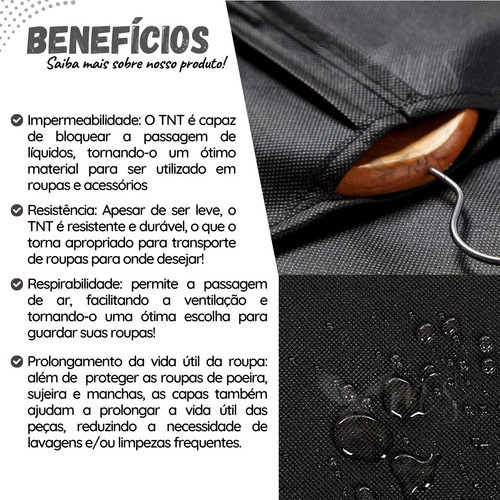 Kit 3 Capas Vestido Protetora Roupas Com Zíper Tnt Preto