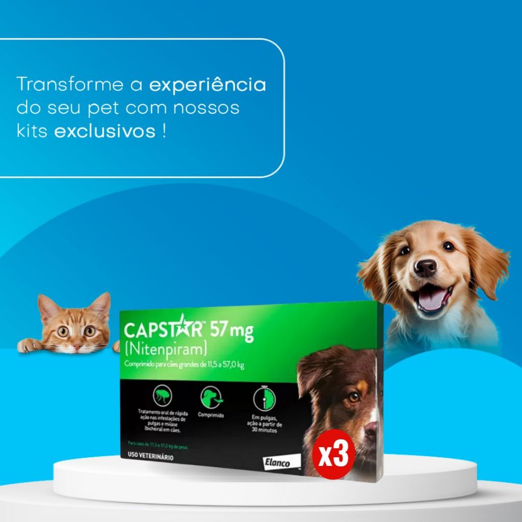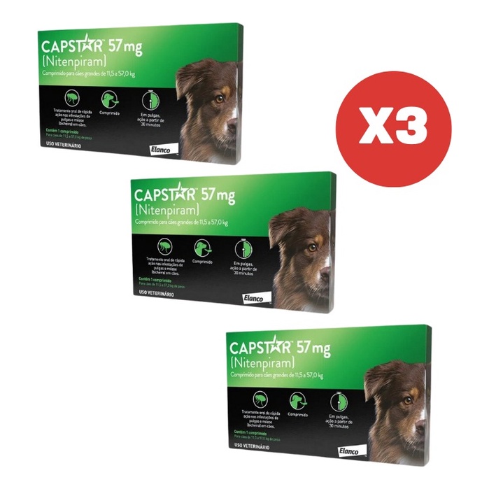 Kit 3 Capstar Antipulgas 57mg 1 Comprimido para Cães Gatos de 11 a 57kg Elanco
