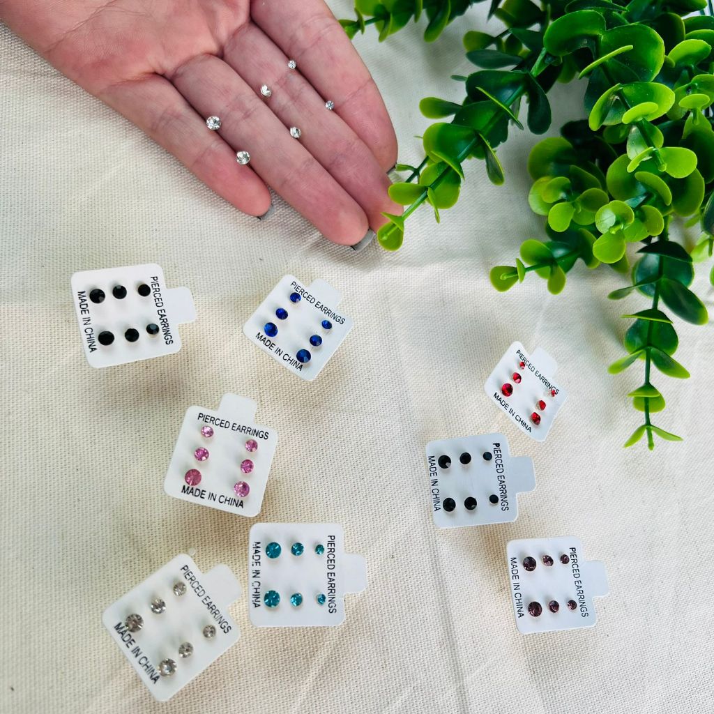 Kit 3 Cartelas de Brinco de Silicone/ Ponto de luz Hipoalergico / Pedrinha Feminino Delicado (AC27)
