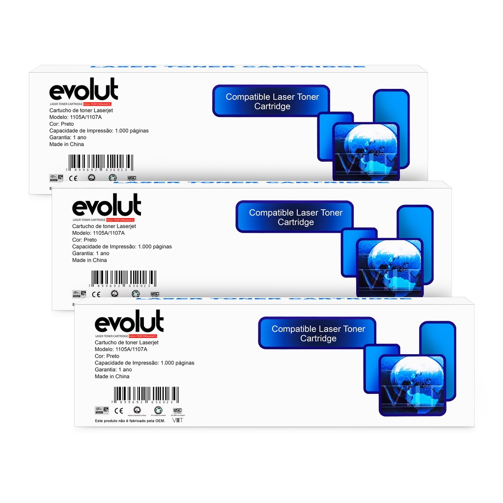 Kit 3 Cartuchos Toner 105A W1105A Compatível Com Chip Preto 1.000págs Evolut Para Laser 107a, 107w, MFP 135a 135w 137fnw aparece na subcategoria Tintas e Toners (de Computadores e Acessórios) na Shopee Brasil por R$ 163,78 (51% de desconto sobre o preço original de R$ 334,24). Avaliado em 5.0/5 pelos compradores e 11 unidades vendidas, este produto se destaca pelo excelente custo-benefício.