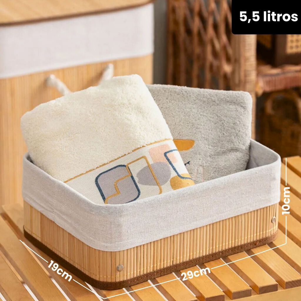 Kit 3 Cestos Organizadores de Bambu Multiuso com Forro