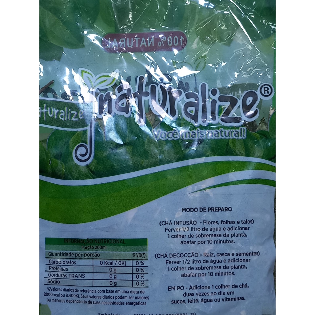 **Kit com pct 3 de 30g cada** Foto ilustrativa, os chás são preparados de acordo com os pedidos. Modo de Preparo: Ferver 1/2 litro de água e adicionar 1 colher de sobremesa da planta, abafar por 10 minutos. Validade e data de fabricação vide embalagem.