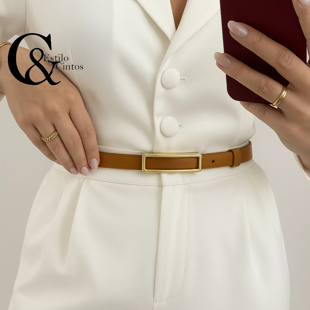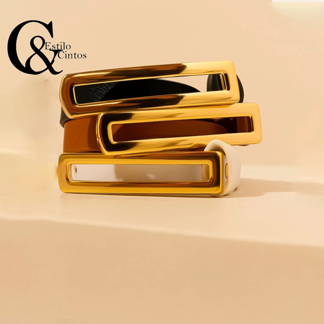 Kit 3 Cinto de Moda Feminina com Fivela Dourada Moderna – Estilo Minimalista Casual Chic P/M/G/GG/XG