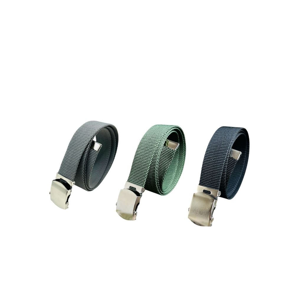 Kit 3 Cinto Masculino Elegante Plus Size Tecido Nylon Resistente Fivela De Metal Prata - Pietro
