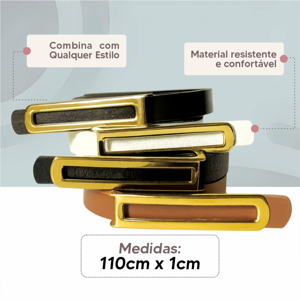 Kit 3 Cintos Femininos Finos 110cm X 1 cm Ajustáveis Elegantes Casual Acessório Moda