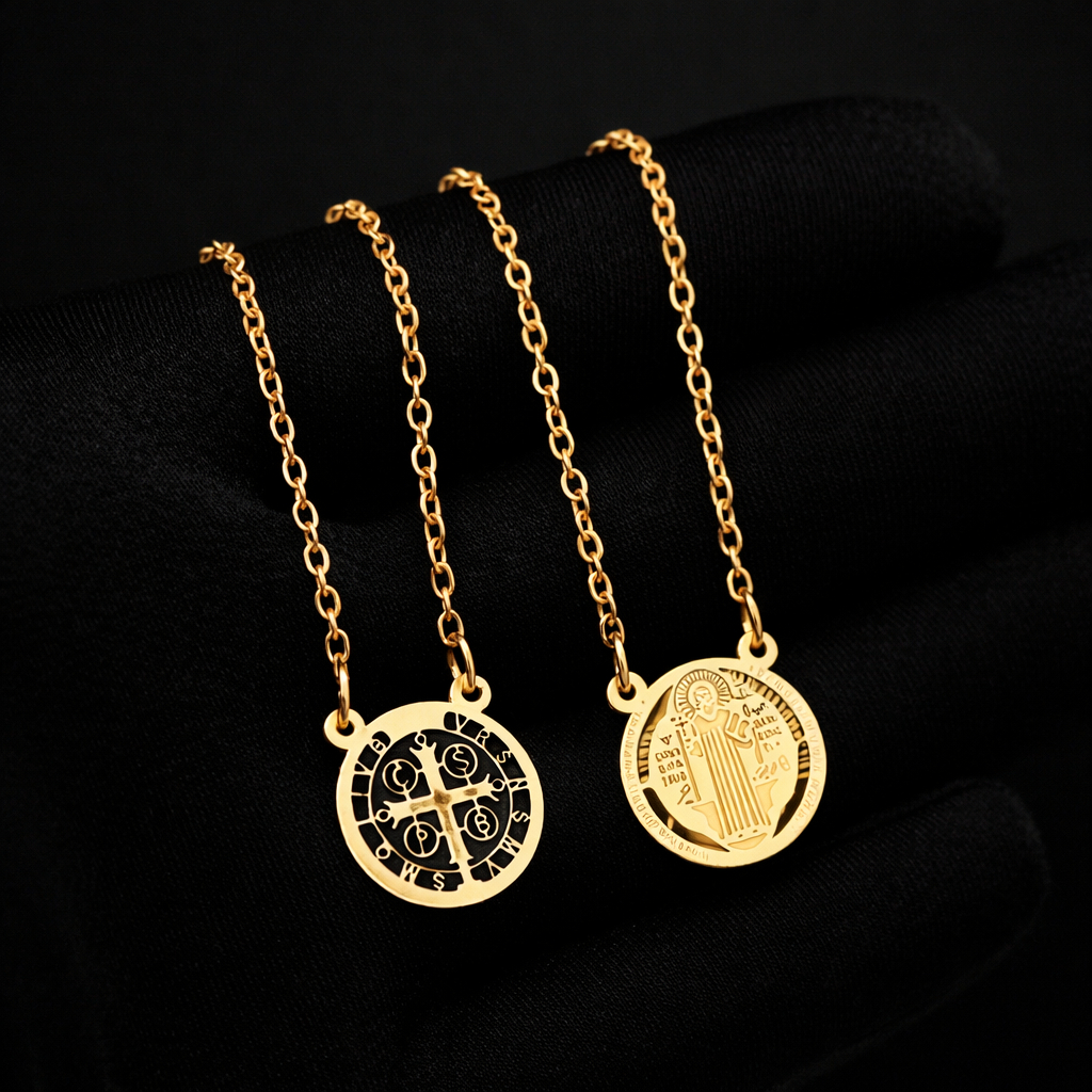 Kit 3 Colar Escapulário São Bento Religioso Aço Inox Inoxidável Não Escurece Hipoalérgico