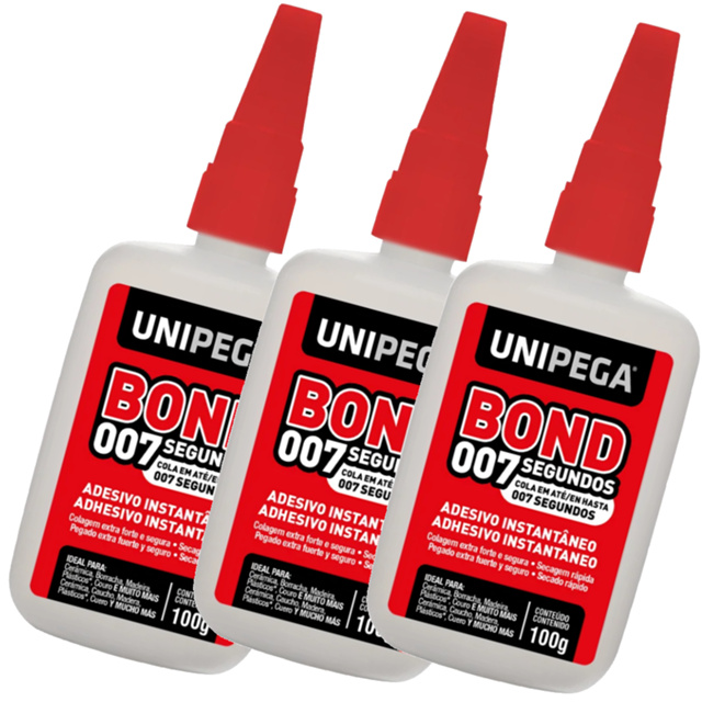 Kit 3 Colas Instantânea Super Bond 007 Unipega 100g Adesiva Secagem Rápida