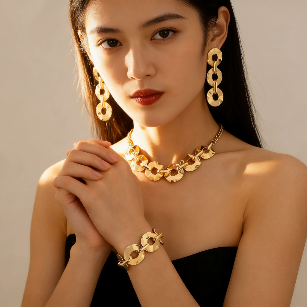 Título: Kit 3 Conjunto Colar Brincos Pulseira Elos Amassados Banhado a Ouro 18k Prata 925 Descrição: ✨ Design Orgânico e Moderno Eleve o seu visual com este Kit exclusivo. O acabamento em Elos Amassados (efeito martelado) traz uma textura única que reflete a luz e garante um brilho sofisticado. Ideal para quem busca elegância no dia a dia. ✅ O Kit Contém: 1 Colar de Elos Amassados 1 Pulseira de Elos Amassados 1 Par de Brincos Pendentes 💎 Por que escolher este conjunto? Tendência: O estilo geométrico é a grande aposta da moda atual. Qualidade: Peças com acabamento premium e alta durabilidade. Presente Ideal: Acompanha embalagem pronta para presentear. 📝 Ficha Técnica: Material: Banhado a Ouro 18k Prata 925 Estilo: Moderno / Geométrico Hipoalergênico: Sim (Livre de Níquel) ⚠️ Dicas de Conservação: Para manter o brilho do seu Banhado a Ouro 18k Prata 925, evite contato com água, perfumes e produtos químicos. Limpe com flanela seca. 🚚 Envio Rápido para todo o Brasil!