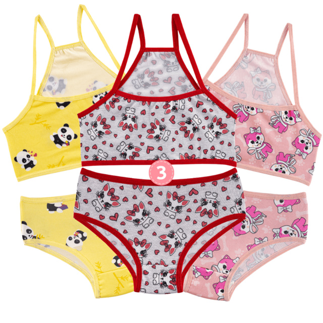 Kit 3 Conjunto Infantil Menina Moça Nadador Estampado Top e Calcinha Microfibra Forro de Algodão