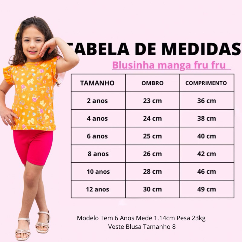 Lindos conjuntos para meninas de 2 a 12 anos Super confortaveis com tecidos cores vivas e alegres. Contem 3 blusas manga fru fru em algodão 3 short em algodão e elastano Tentamos manter a fidelidade das imagens, mas nosso estoque é bem sortido. Nosso envio é em 24 horas.