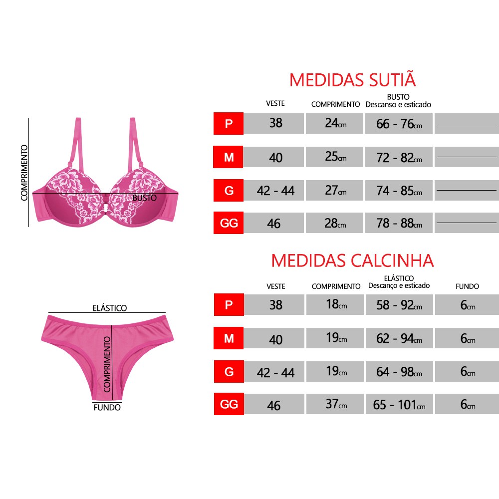 Transforme seus momentos em experiências inesquecíveis com este conjunto de lingerie feminino que une conforto, charme e qualidade. 👙 Sutiã: Confeccionado em 77% Poliéster e 23% Elastano, com bojo moldado em poliuretano e arco em PVC que garante melhor sustentação e realce dos seios. Os detalhes em renda delicada deixam a peça ainda mais sofisticada. Possui alças finas ajustáveis e fecho traseiro com 2 níveis de regulagem. 🩲 Calcinha Tradicional: Produzida em poliéster e elastano, com elástico confortável no cós e pernas, além de forro 100% algodão, proporcionando frescor e higiene no dia a dia. Modelo tradicional (não é fio dental). 🎨 Cores: Disponível em média de 8 a 10 cores variadas, enviadas de forma sortida conforme o estoque. 📏 Tamanhos Disponíveis: P – veste manequim 38 M – veste manequim 40 G – veste manequim 42/44 GG – veste manequim 46 ✨ Destaques do Produto: Lingerie com renda delicada e acabamento premium Sustentação ideal e caimento perfeito Conforto para uso diário ou ocasiões especiais Kit variado com cores selecionadas.