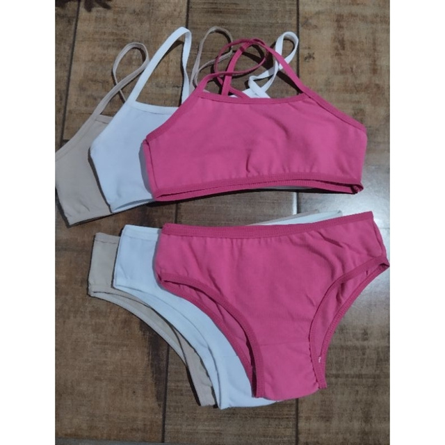 KIT 3 CONJUNTOS infantil top e calcinha cotton juvenil mocinha