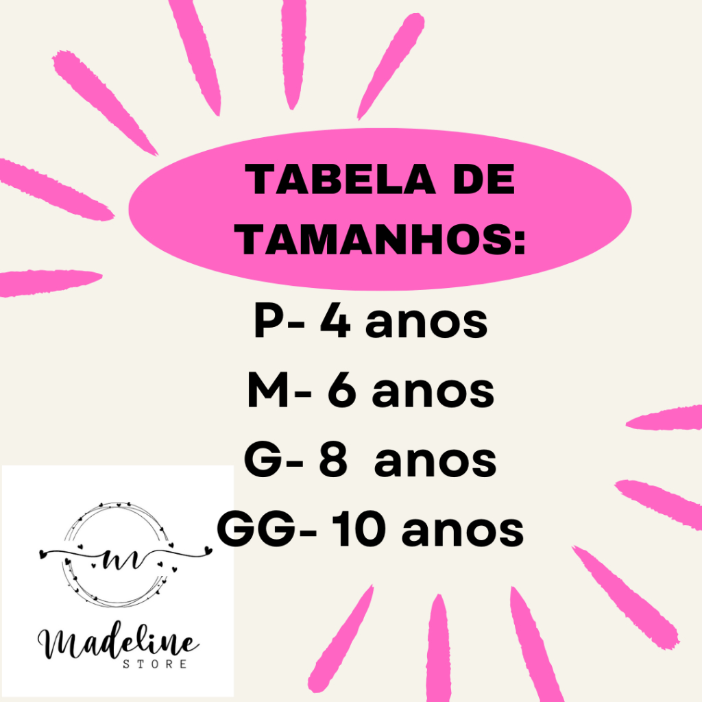 Conjunto Top e Calcinha Infantil - 3 Unidades 🚚 𝗘𝗡𝗩𝗜𝗢 𝗜𝗠𝗘𝗗𝗜𝗔𝗧𝗢 𝗘𝗠 𝗔𝗧𝗘́ 𝟭𝟮𝗛 𝗨́𝗧𝗘𝗜𝗦 O conjunto é a melhor escolha para deixar sua filha mais confortável, esse modelo é indicado para todas as atividades do dia-a-dia, fazer atividade física, ir por baixo do uniforme pra escola. O sutiã estilo top, promove sustentação, possui elástico na parte inferior. A calcinha é confeccionada no mesmo material, com elástico na parte superior, trazendo ajuste ao corpo. ✔ Tecido SUEDE (tecido fino, macio, aveludado) ✔ Forro da calcinha 100% Algodão ✔ Lindas estampas infantis ✔ Não dá bolinha ✔ Não desbota a estampa ✔ Não encolhe após a lavagem ✅TABELA DE MEDIDAS/IDADE: RECOMENDADA / LARGURA / ESTICADA / ALTURA P= 4 anos M = 6 anos 26/26 46/46 20/20 G = 8 anos 28/28 48/48 21/21 GG = 10 anos 30/30 54/54 22/22 🚨FORMA PEQUENA🚨 ✅Para garantir melhor durabilidade de seu produto: ✔ Deve ser lavado apenas à mão e com sabão neutro. ✔ Prefira a secagem à sombra. ✔ Dispensa o uso de amaciante e ferro de passar. 🚨ATENÇÃO🚨 ✔ CORES SORTIDAS (enviadas conforme disponibilidade) ✔ Prezamos por atendimento de excelência e materiais de qualidade. ✔ Fabricação Própria ✅Qualquer dúvida estamos à disposição no chat.