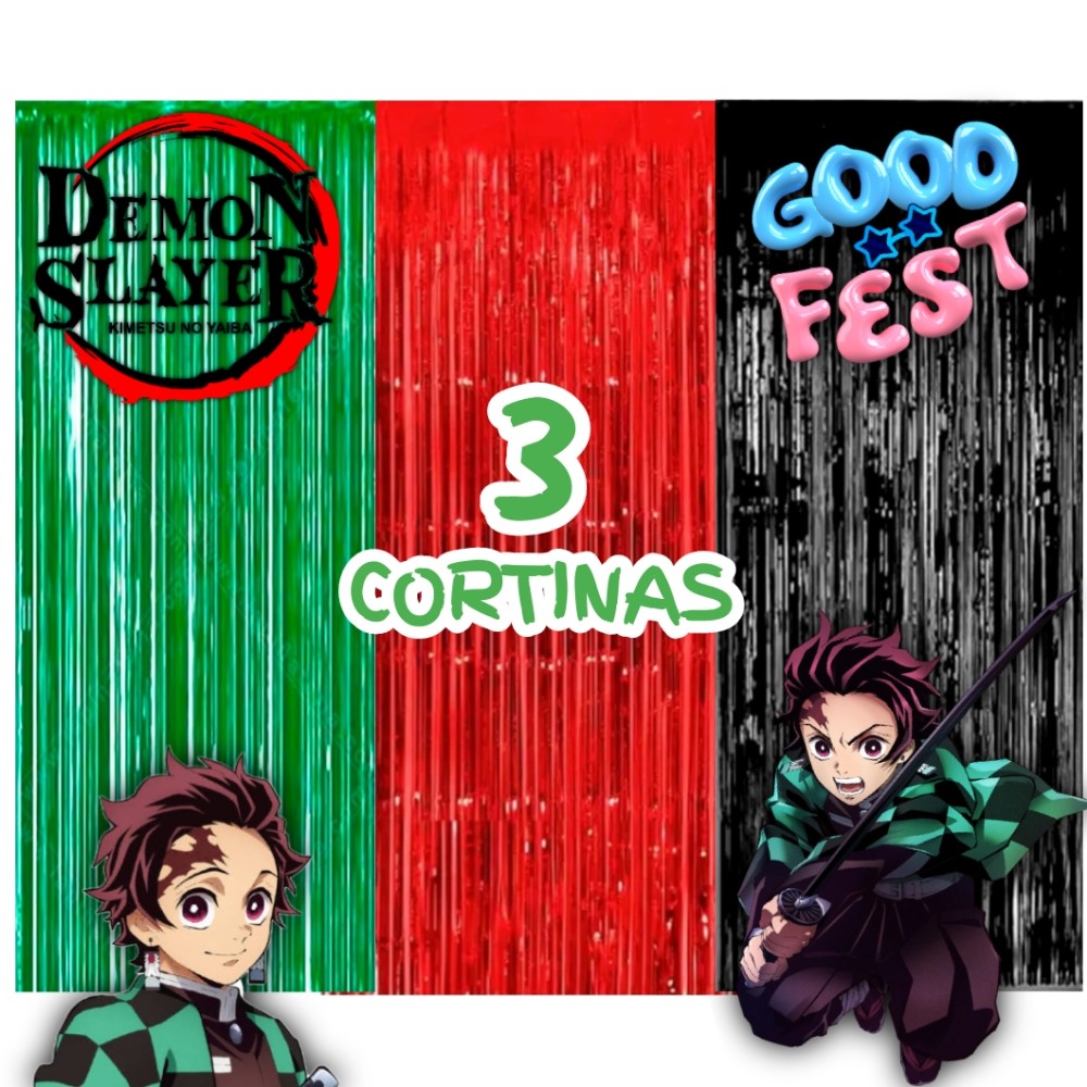 kit:3 Cortina Metalizada DEMON SLAYER Decoração, Festa, Aniversário, Adereços, Banner, Festival, Comemoração