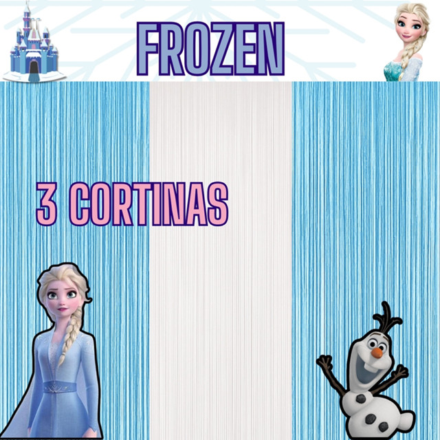 kit 3 Cortina Metalizada frozen Elsa Olaaf Decoração Festa Aniversário banner festival comemoraçao