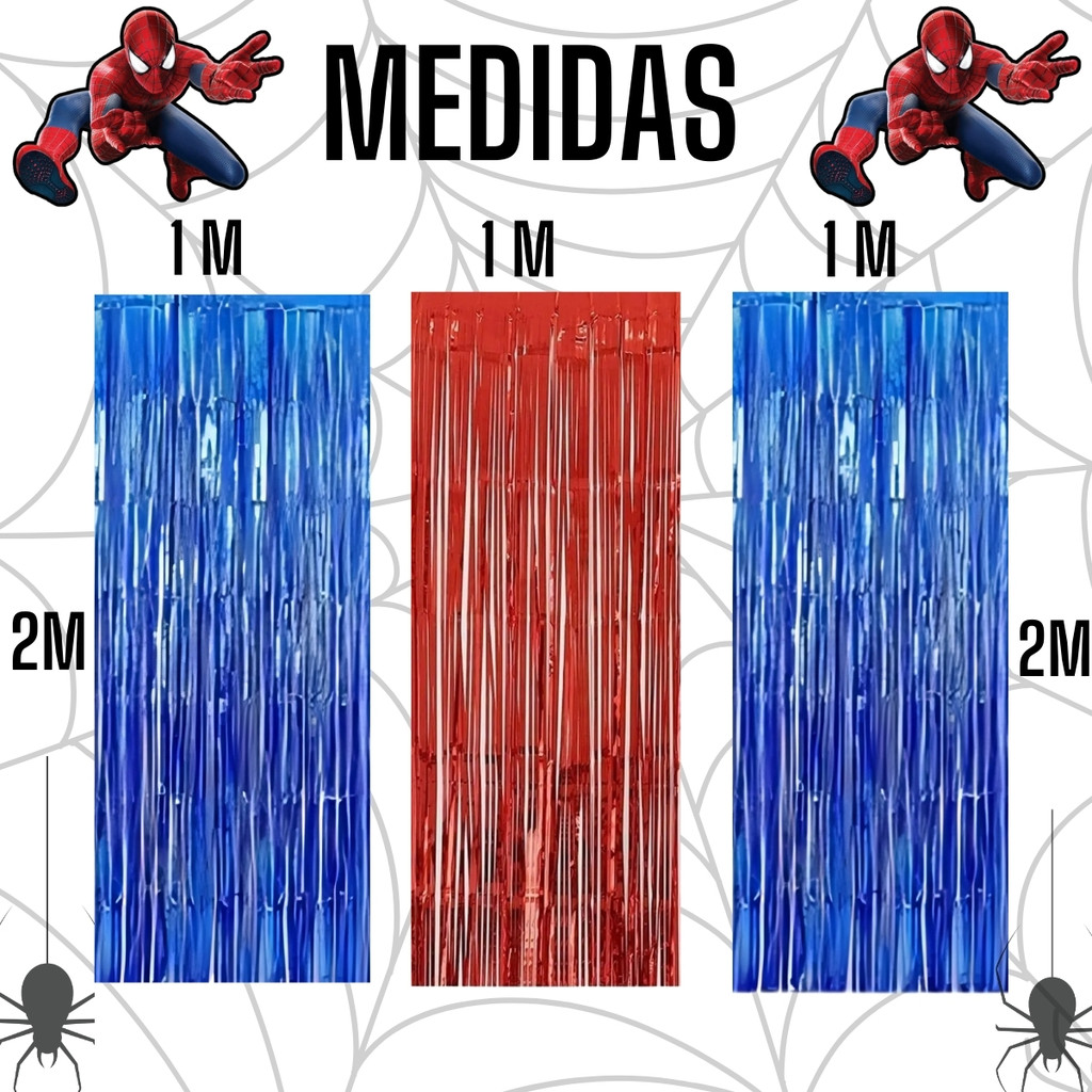 kit 3 Cortina Metalizada Homem Aranha Spider Man Decoração Festa Aniversário Banner Comemoração
