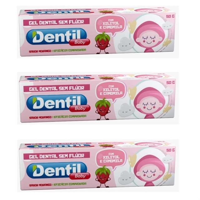 Kit 3 Creme Dental Dentil Baby Sem Fluor Com Xilitol Camomila Morango 50G