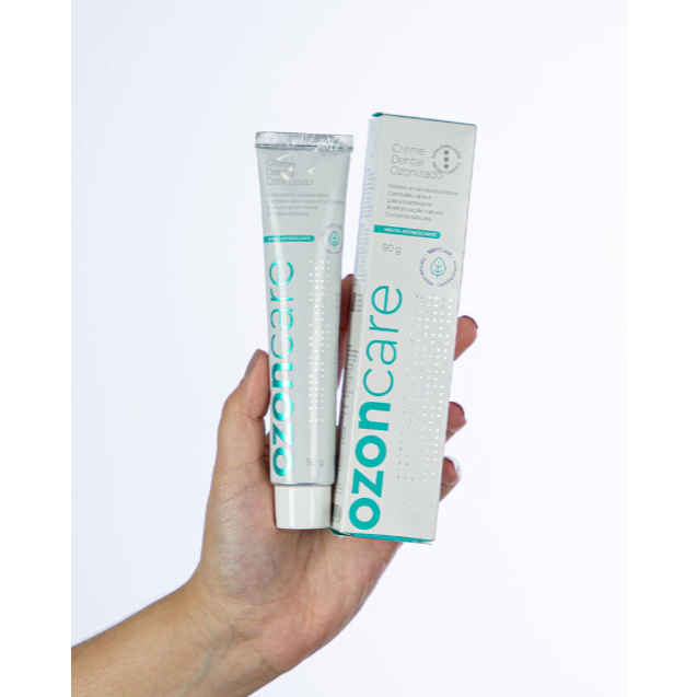 CREME DENTAL OZONIZADO Formulado com tensoativos suaves e eficazes, o Creme Dental Ozonizado foi desenvolvido para proporcionar os benefícios do ozônio medicinal nos cuidados diários com a saúde bucal. Sua composição é natural, segura e livre de substâncias potencialmente tóxicas, ideal até para quem possui dentes e gengivas sensíveis. O óleo ozonizado, nosso principal ativo, possui ação antisséptica, regeneradora e reparadora, contribuindo para dentes e gengivas mais saudáveis. PRINCIPAIS BENEFÍCIOS Auxilia no controle de infecções e inflamações orais Contribui para dentes e gengivas mais saudáveis Indicado para usuários de implantes dentários (protege as gengivas) Ideal para dentes sensíveis LIVRE DE ❌ Flúor ❌ Açúcares e adoçantes artificiais ❌ Surfactantes agressivos ❌ Parabenos e triclosan ❌ Aromas e corantes sintéticos ❌ Derivados de óleos minerais ATIVOS NATURAIS E SUAS PROPRIEDADES Extrato de Calêndula 🌼 Ação calmante e regeneradora, auxiliando na saúde de dentes e gengivas. Óleo de Oliva Ozonizado 🫒 Atividade antimicrobiana (contra fungos, vírus e bactérias). Estimula a regeneração tecidual e favorece a cicatrização por meio da ativação da microcirculação. Limão Tahiti 🍋 Propriedades cicatrizantes, calmantes e adstringentes. Grapefruit 🍊 Ação adstringente, antisséptica e refrescante. Xilitol 🌿 Adoçante natural que previne cáries e favorece a remineralização dos dentes. Óleo Essencial de Melaleuca (Tea Tree) 🌱 Propriedades antissépticas, antivirais, fungicidas e cicatrizantes. Combate aftas, feridas bucais, mau hálito e infecções gengivais.