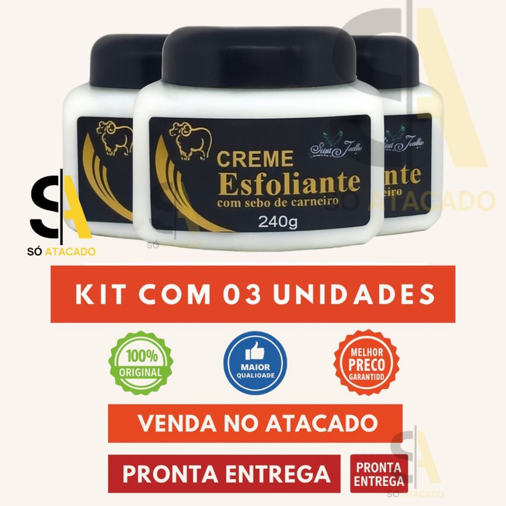 | Kit 3 Creme Esfoliante com Sebo de Carneiro 240g San Jully | Atacad... este produto | R$ 19,98 | 6% | 5.0/5 | 4 |