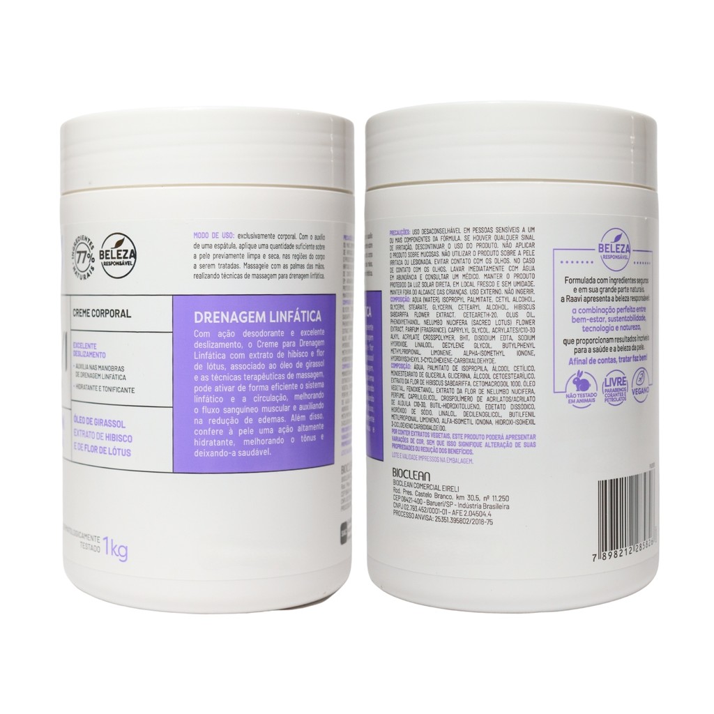 Kit 3 Creme Massagem Drenagem Linfática Profissional Raavi