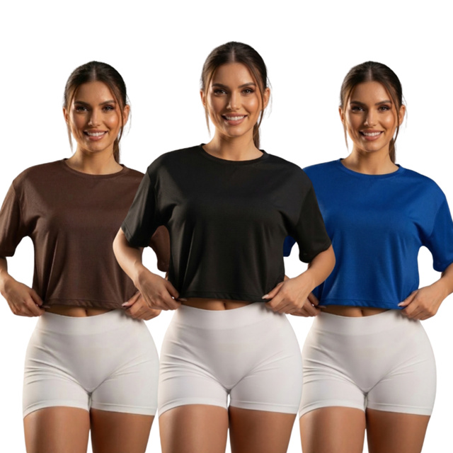 Kit 3 Cropped Feminino Academia Dry Fit Furadinho Leve Confortável Treino Atividade Física Anti Suor