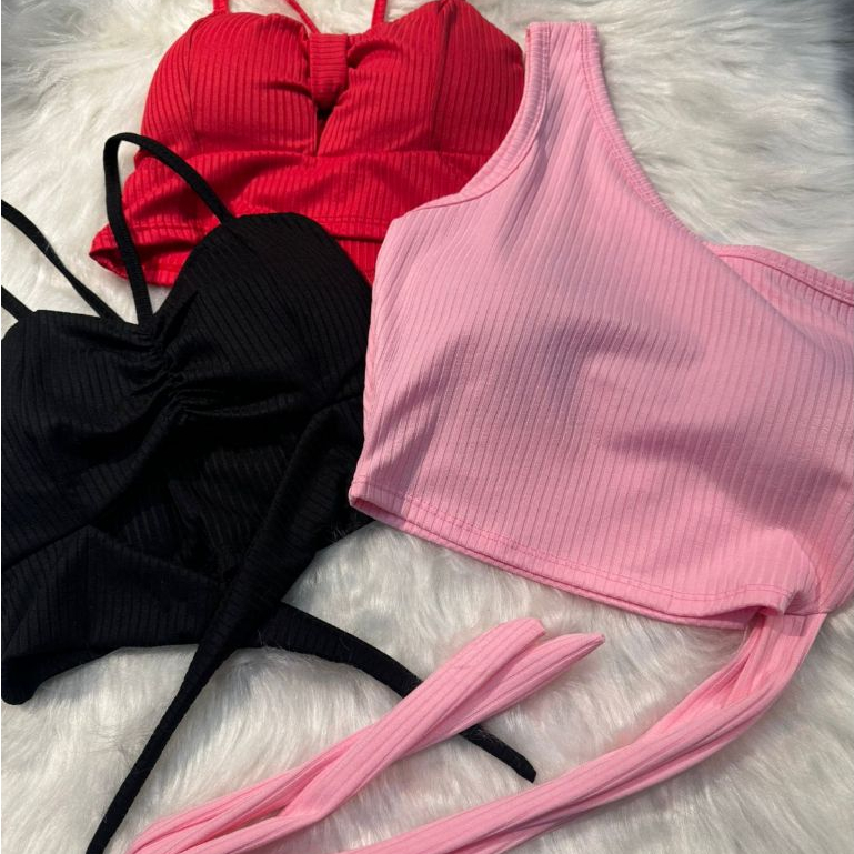 KIT 3 Croppeds Modelos Diferentes Com Bojo Moda Verão Casual