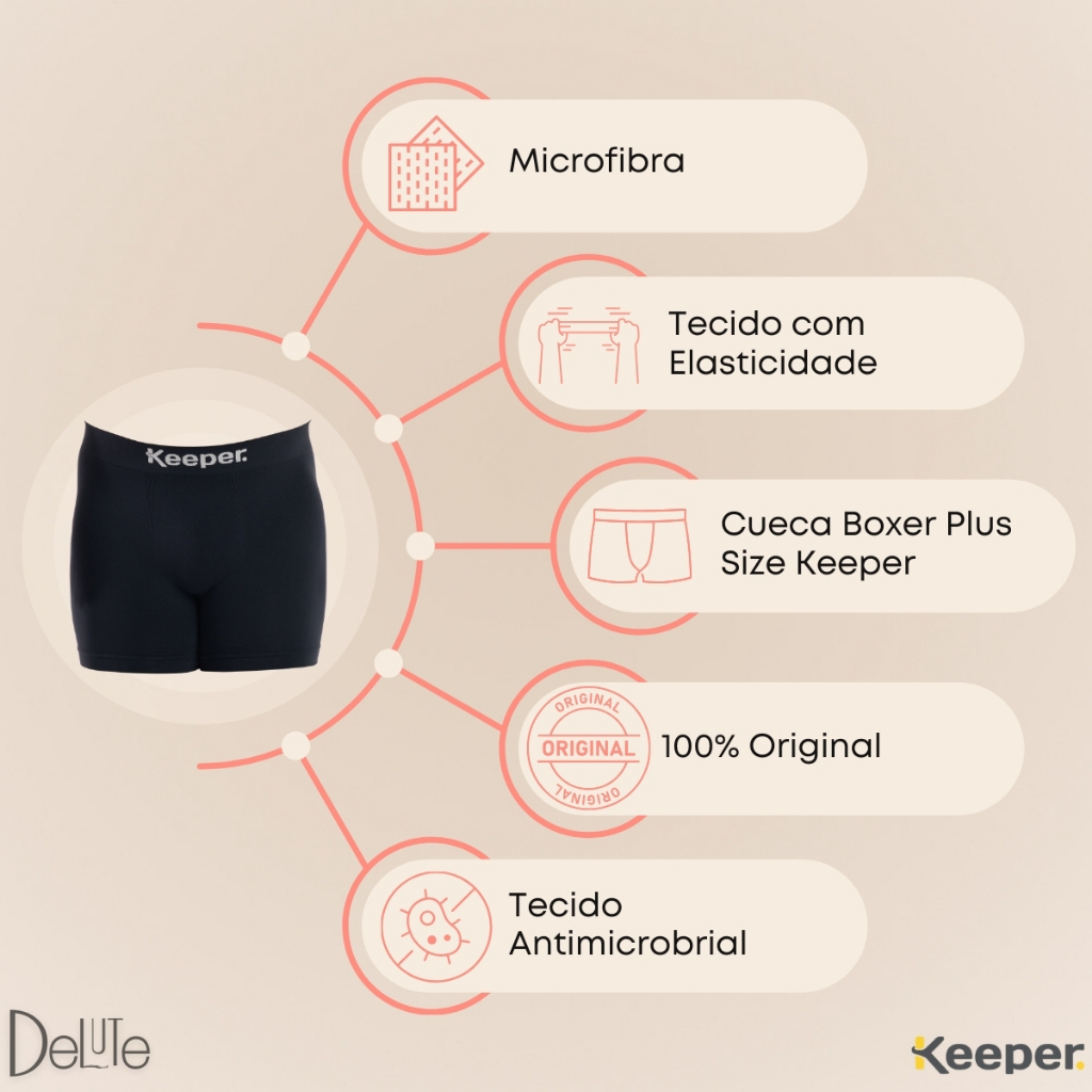 Kit 3 Cueca Boxer Box Adulto Masculina S/ Costura Keeper Modelo Plus Size Anti Assaduras Resistente